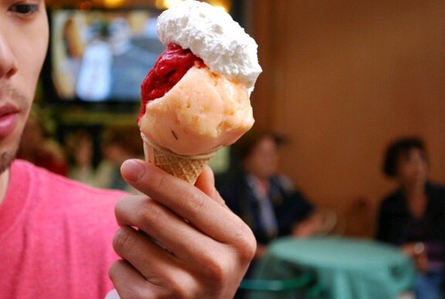 Por todo o país tivemos encontros imediatos com bons gelados. Mas o coup de foudre, não ao primeiro olhar mas ao primeiro contacto com as papilas gustativas, só aconteceu em Roma. Mais precisamente na Via Uffici del Vicario, na gelataria Giolitti. A mais antiga de Roma, dizem, perto do Panteão e nada fácil de encontrar mesmo com um mapa nas mãos (ou então tudo se explica pela inaptidão em nos orientarmos por novos territórios).