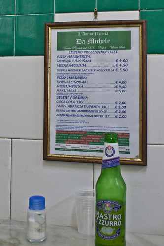 Enquanto esperamos pelas nossas pizzas (uma Margherita, com tomate, queijo, azeite e manjericão, e uma Marinara, com tomate, alho, azeite e oregãos, ambas de massa fina mas nunca seca) reparamos numa foto de Julia Roberts envolvida licitamente com uma fatia de pizza. A espera leva-nos a identificar que, nessa imagem, a atriz está na Pizzeria da Michele, até que (terceira surpresa) acabamos por perceber que essa imagem faz parte de uma das cenas do filme "Comer, Orar e Amar".