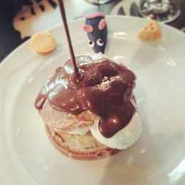 Claro, o ratatouille é o prato que não podia faltar mas há muitas outras coisas para provar, incluindo produtos locais, como o queijo Brie de Meux, ali de pertinho, ou um vinho e um champanhe criados especialmente para serem servidos no restaurante. Também ali nos sentimos do tamanho de um rato. As mesas são feitas à imagem de tampas de frascos de compota e as cadeiras são cópias de rolhas de garrafas de champanhe. Lindinho até não poder mais.