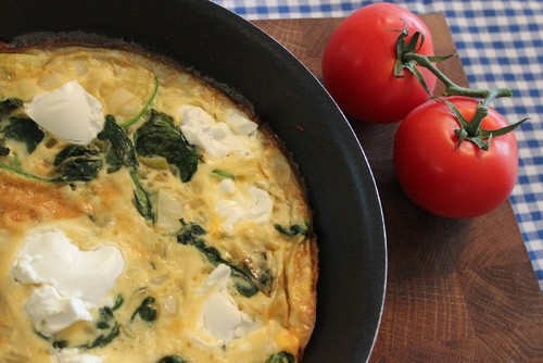 Cá fica então uma tradicional receita de frittata de queijo de cabra e espinafres.