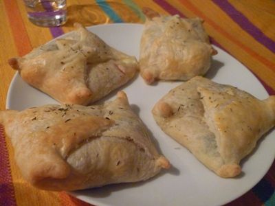 Olhei para os quadrados de massa folhada que tinha no frigorífico e eles olharam para mim com cara de quem queria ser usado. Eu fiz-lhes a vontade.